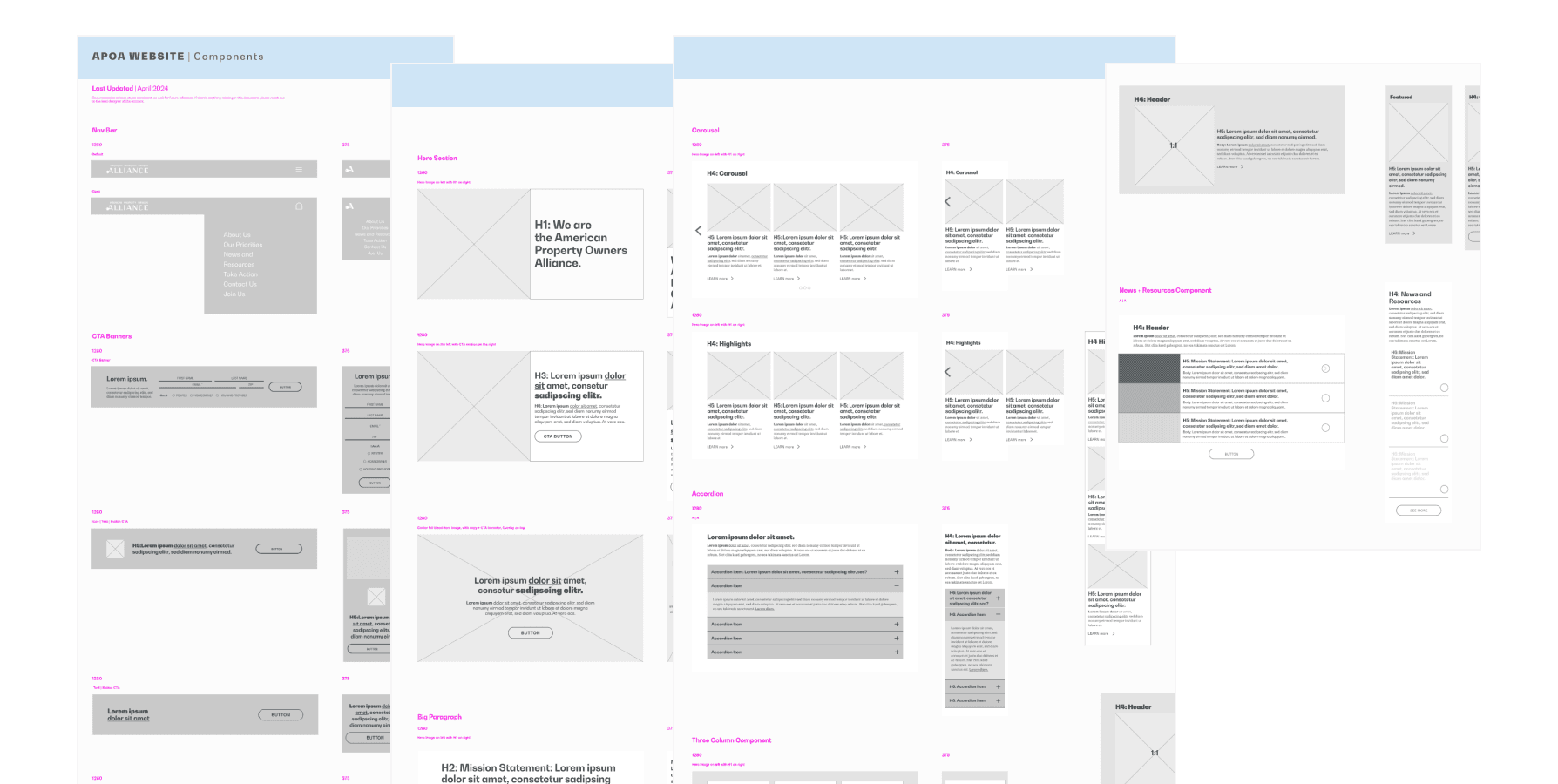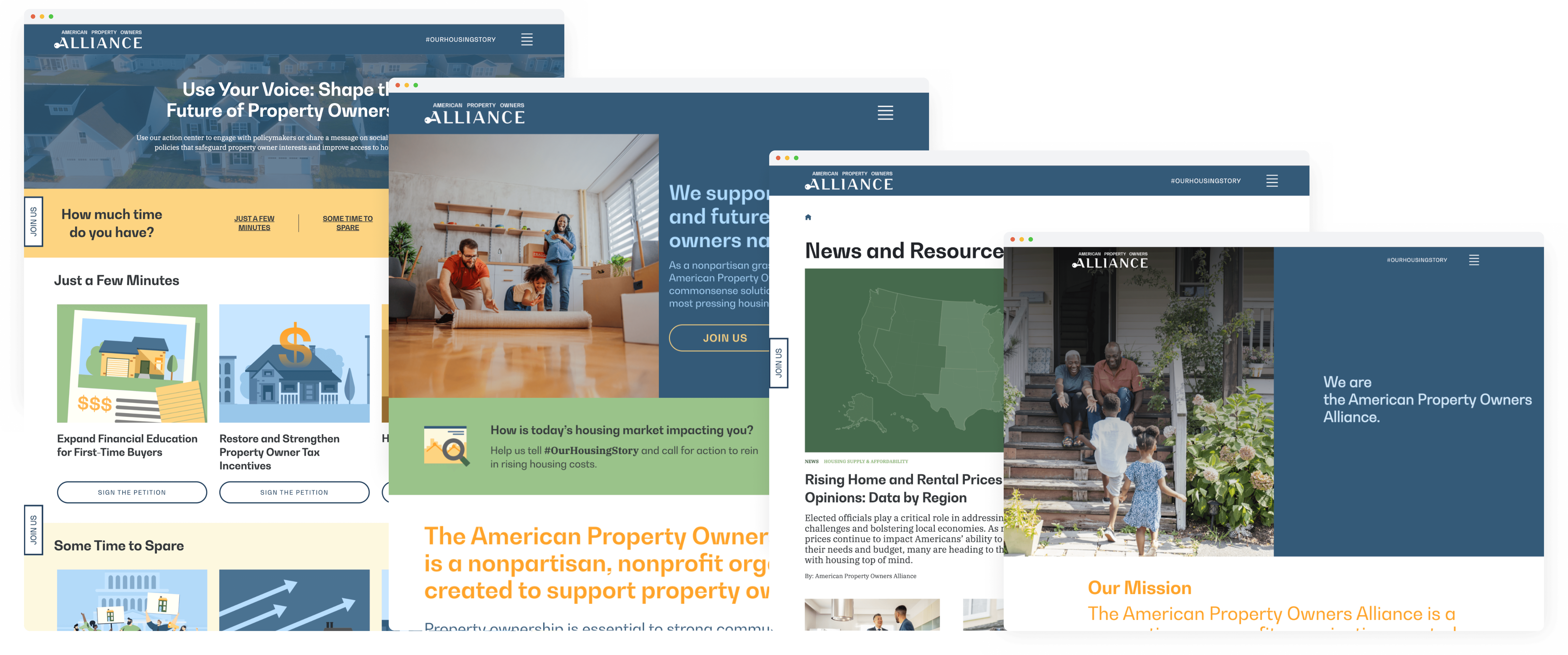 APOA approached our team to improve its website across multiple fronts. Content writers needed the ability to quickly launch campaign pages, and developers required flexible, reusable modules to support fast-turn requests. The site lacked a streamlined system for building pages efficiently, and there was an opportunity to strengthen both the user experience and backend workflows. I was brought in to lead the visual direction, define the user experience strategy for campaign landing pages, and help establish a scalable design foundation.
